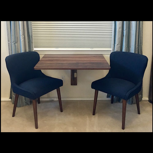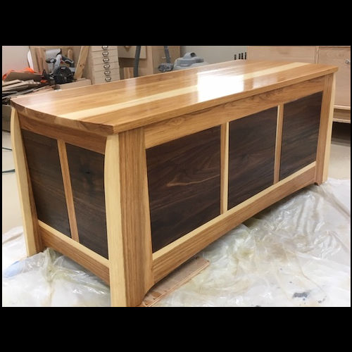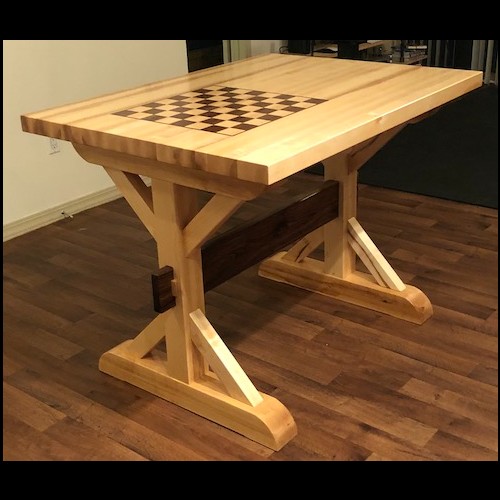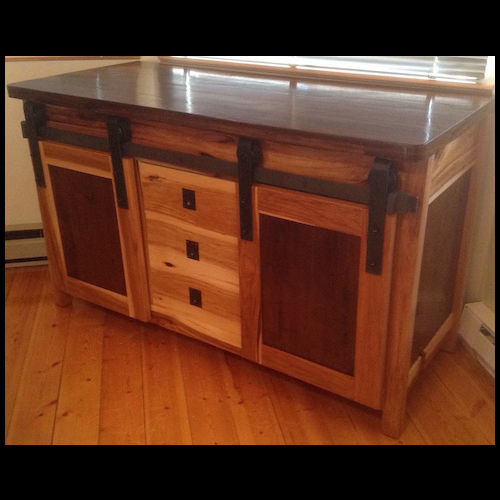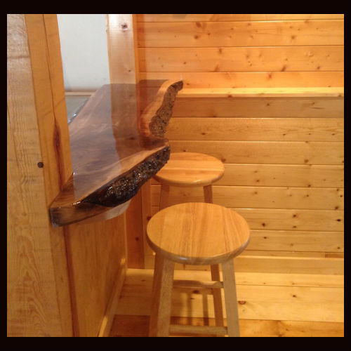 Walnut slab with epoxy finish surrounded by knotty pine siding