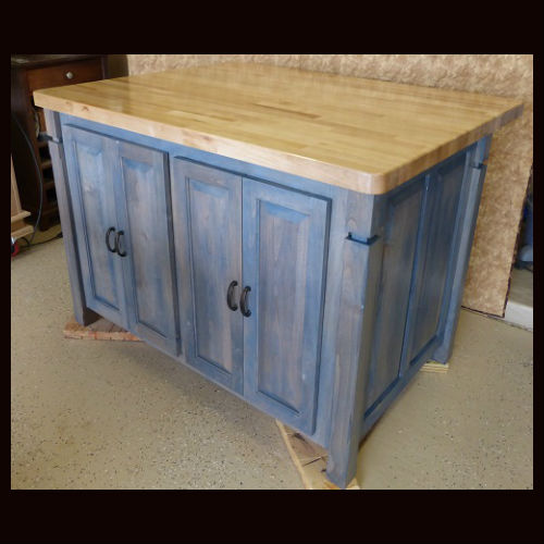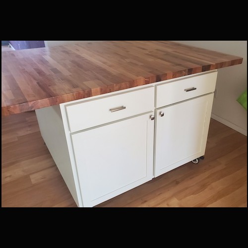 Painted Butcher Block Island, painted plywood case with maple butcher block top
